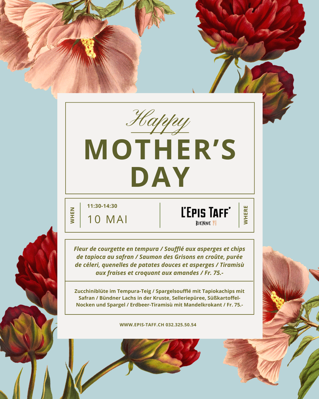 Dimanche midi 10 mai 2026, fêtez vos mamans au Bistrot à Bienne